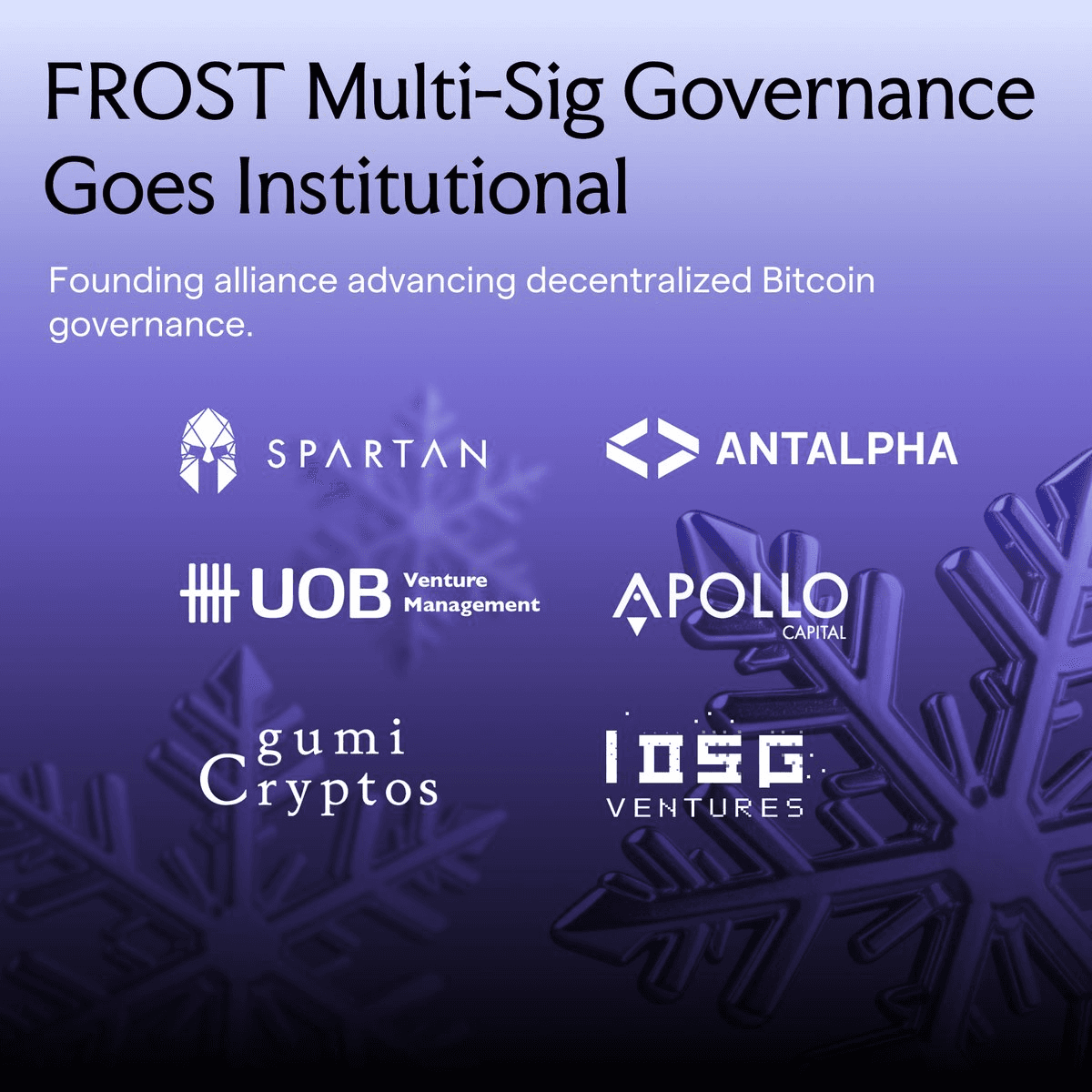Solv Protocol has announced institutional partners for its FROST Multi-Sig governance system, marking a significant step in Bitcoin security infrastructure. **Key Partners Include:** - The Spartan Group - Antalpha Global - Apollo Crypto - Gumi Cryptos - IOSG Ventures - UOB Venture Management **What is FROST?** FROST (Flexible Round-Optimized Schnorr Threshold) is a Bitcoin-compatible threshold signing architecture that enables distributed, institutional-grade custody and governance without modifying Bitcoin's core protocol. **Why This Matters:** The upgrade from SAL to FROST Network provides: - Stronger security through distributed control - Enhanced accountability and auditability - Higher execution scalability - More reliable infrastructure for institutional adoption This partnership brings together established crypto institutions to govern and secure Bitcoin assets through advanced cryptographic methods, making SolvBTC more accessible for DeFi integrations while maintaining institutional-grade security standards. [Read full announcement](https://www.globenewswire.com/news-release/2026/03/27/3264146/0/en/Solv-Names-Insitutional-FROST-Multi-Sig-Partners-Raising-the-Bar-for-Decentralized-Bitcoin-Asset-Governance.html)
