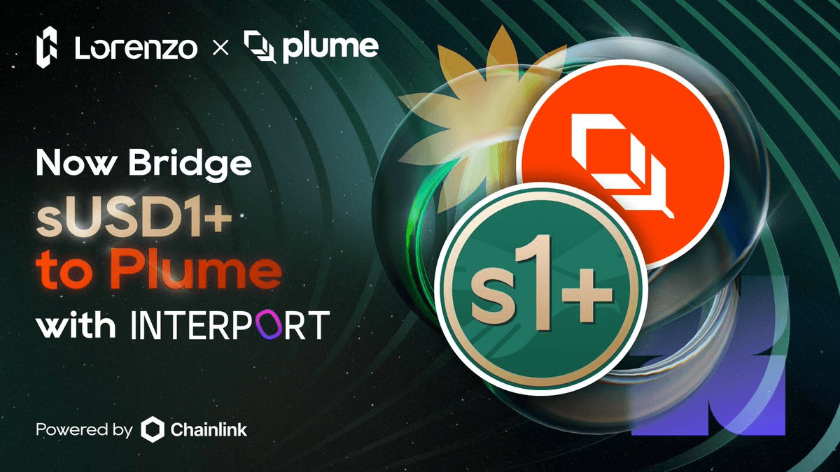 **New Cross-Chain Route Launched** Interport has enabled bridging of Lorenzo Protocol's sUSD1+ token to Plume Network from both Ethereum and BNB Chain. **Key Details:** - Utilizes Chainlink's CCIP (Cross-Chain Interoperability Protocol) for secure execution - Expands accessibility for the yield-bearing sUSD1+ asset across multiple networks - Available now at [Interport Bridge](https://app.interport.fi/bridge/) This integration continues Lorenzo Protocol's expansion of cross-chain capabilities for their stablecoin product.