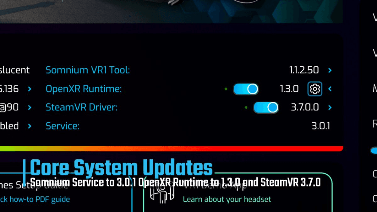Somnium Space has deployed version 3.0.1 updates across its core infrastructure: - **Somnium Service 3.0.1** - Core platform upgrade - **OpenXR Runtime 1.3.0** - Cross-platform VR standard implementation - **SteamVR Driver 3.7.0** - Steam integration layer These technical updates follow a previous release that included performance improvements, visual enhancements, and mixed reality features. The updates maintain compatibility across Somnium Space's blockchain-based virtual world platform, which supports land ownership, object importing, and cross-platform experiences. The releases represent routine maintenance of the technical stack powering the persistent VR environment.
