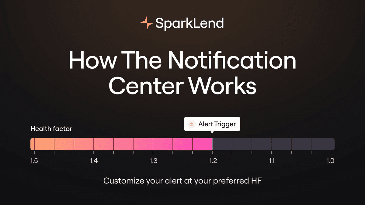 Spark has launched its **Notification Center**, a monitoring system designed to track lending position risk on SparkLend. **Key features:** - Automatically monitors Health Factor metrics - Sends alerts when positions approach user-defined risk thresholds - Fully customizable alert triggers for each user - Provides real-time visibility into position health The system addresses a growing need as on-chain lending expands. Users can now receive proactive warnings before their positions become vulnerable to liquidation. Spark describes this as an initial step toward improving transparency for capital deployed through its platform.