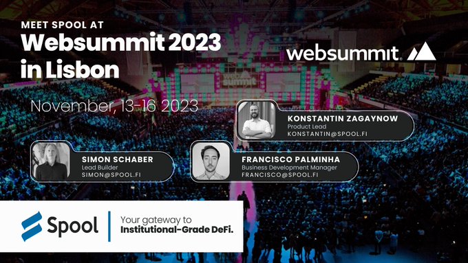馃敼November 13-16 Spool will be joining @websummit 2023 in Portugal! Websummit is a leading tech conference for CEOs, founders, and investors. Simon (Lead Builder), Konstantin (Product Lead), and Francisco (BD Manager) will be representing Spool. 馃憠websummit.com
