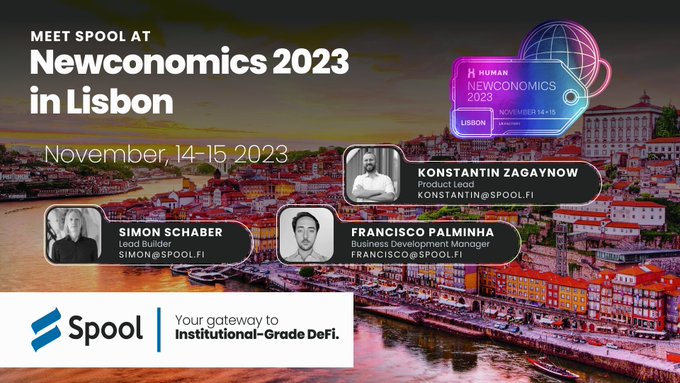 馃敼Spool is excited to be part of @human_protocol's Newconomics 2023 event! Our esteemed team members, Simon (Lead Builder), Konstantin (Product Lead), and Francisco (BD Manager), will be representing Spool on November 14th and 15th in Portugal. 馃憠newconomics2023.com