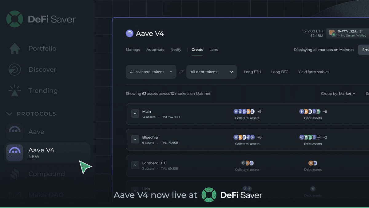 DeFi Saver Launches Full Aave V4 Support on Day One