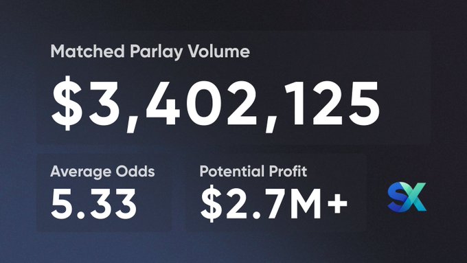 One week into the Parlay Launch Tournament: - $3.4M+ Matched parlay volume - $2.7M+ Potential profit - 205K+ $SX purchased with parlay revenue Three weeks left to climb the leaderboard!