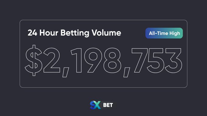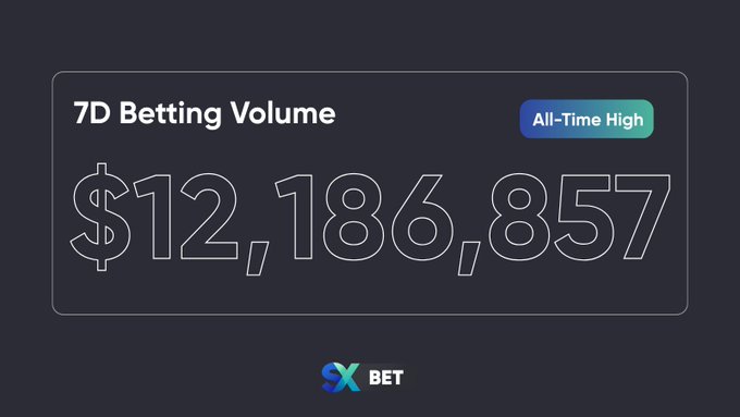 Another record-breaking weekend in the books for SX Bet. > All-time high weekly betting volume ($12.2M) > All-time high daily betting volume ($2.7M+)