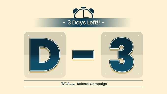 🚨 TADA mini Referral Campaign – D-3 Countdown!🚨 3 days left until TADA mini’s referral campaign wraps up this Friday at 14:59 UTC! ⏳ What’s next? 👀 Stay tuned for exciting updates and more about TADA mini and MVL! TG Channel 👉 t.me/mvlchain_news_…