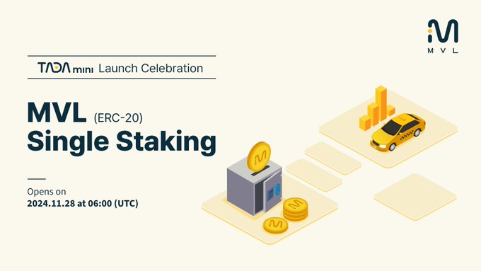 🚨 New MVL Single Staking Pool Opening Nov 28! We’re celebrating the successful launch of TADA mini with a NEW Staking Pool on MVL-FI! 👏 Stake $MVL tokens & Earn rewards (ERC-20) 🔓 Opens 👉 2024.11.28, 06:00 AM (UTC) More details 🔗 mvlchain.page.link/4y5x MVL-FI website