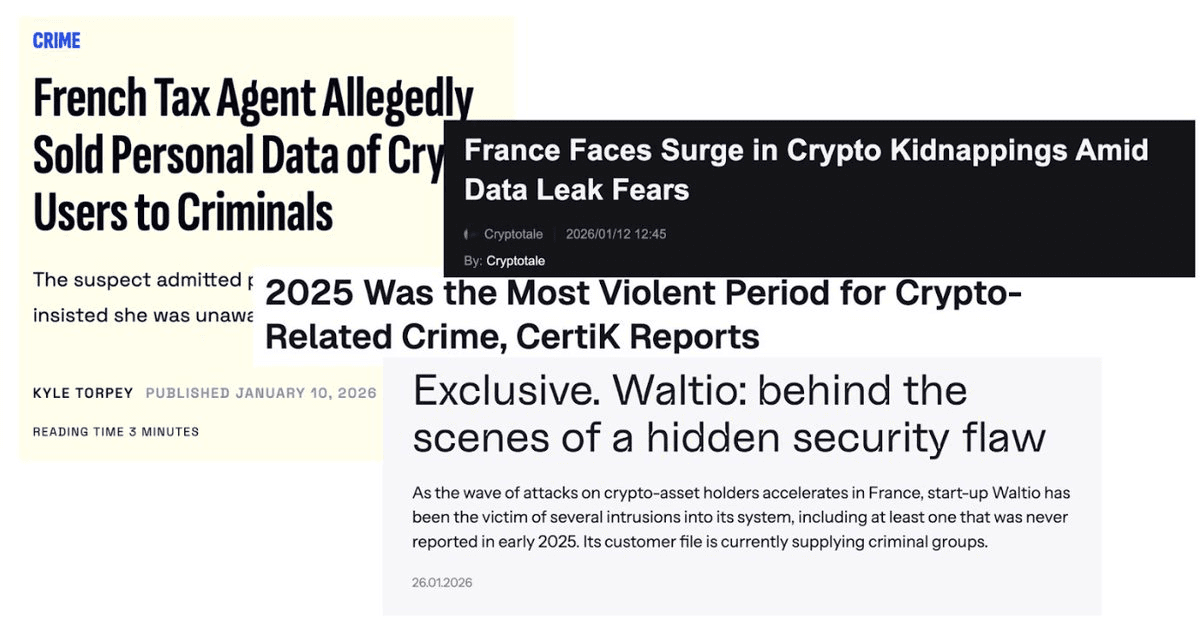 Between 2025-2026, France experienced over 20 crypto-related kidnappings where victims were tortured and millions stolen. The attacks weren't random. In January 2026, **Waltio**, a French crypto tax software, was hacked, exposing 50,000 users' tax reports, holdings, and email addresses. A French tax agent was arrested for selling confidential crypto holder data to criminals. Lists containing 5,000 French holders appeared on the dark web for $3,000. **The centralized exchange vulnerability:** - Users submit passports, selfies, and proof of address - Exchanges store this data and report activity to governments - Data is shared with partners for compliance - Breaches are inevitable 2.6 billion records leaked globally in 2025, with France hit hardest in Europe. Centralized exchange accounts have become target lists containing names, addresses, holdings, and family information. Decentralized protocols like THORChain operate without KYC, accounts, or stored identity data. The architecture makes it impossible to collect user information, meaning there's no database to breach or leak.