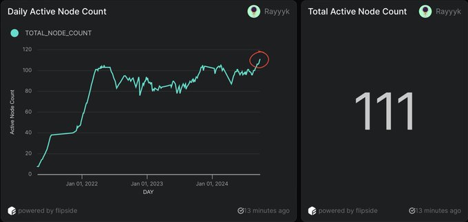 .@THORChain hits a new all-time high with 111 nodes and 107 million $RUNE bonded, representing 32% of the circulating supply. As the 120-node limit approaches, bond wars could kick off soon. 馃憖