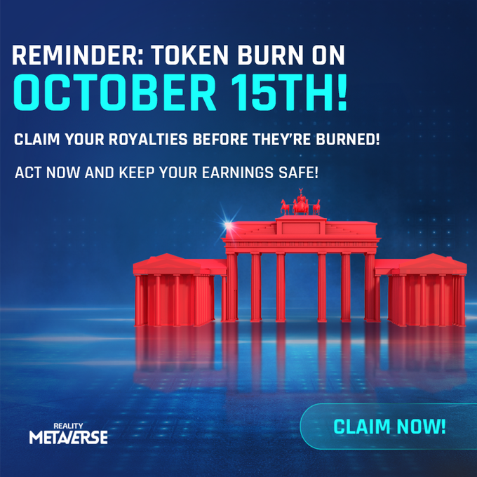 🔥 Reminder: Token Burn on October 15th! 🔥 ⏰ Last chance to claim your royalties before they’re permanently burned! Make sure to secure your rewards between 16.08.2024 00:00 CET and 15.10.2024 23:59 CET⏳ 💸 Why it matters: Unclaimed royalties will be burned, so claim now and