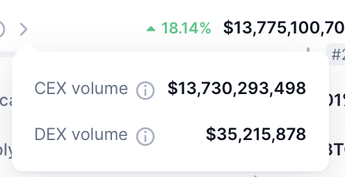 Just your weekly reminder that of the $13.2bn of #Bitcoin volume today, only 0.17% of it is facilitated through DEX's. Almost all of it coming from @THORChain Chainflip will be facilitating a lot more of this CEX volume through its protocol come launch. We are still early.