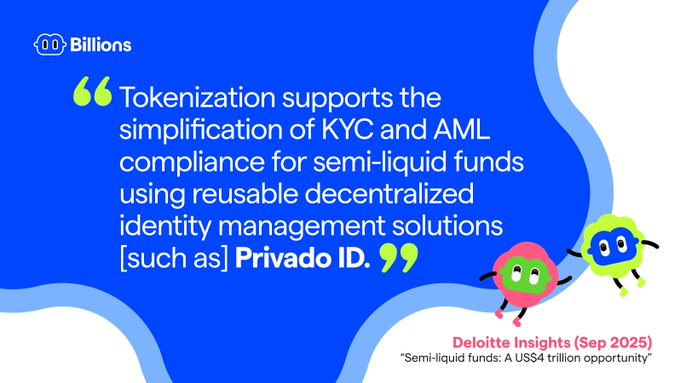 Big news from @Deloitte: Their $4T semi-liquid funds report names Billions’ tech stack @privadoID as the solution for privacy-preserving KYC in tokenized finance. TradFi is waking up to ZK. Are you ready?