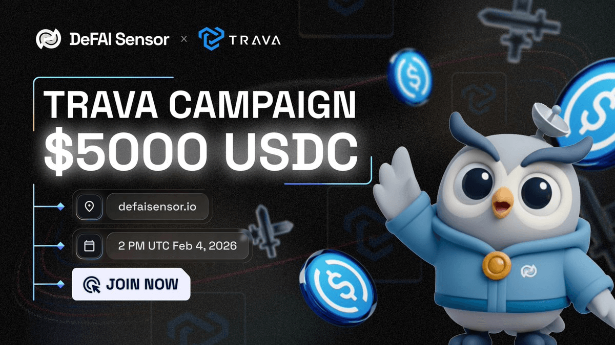 Trava Finance has activated its campaign on DeFAI Sensor, offering participants the opportunity to complete quests and compete for rewards. **Campaign Details:** - **Prize Pool:** $5,000 USDC - **Mechanism:** Complete Trava-related tasks to earn points and rank on the leaderboard - **Target Audience:** Trava Knight Fellows and DeFAI Sensor users The campaign builds on Trava's recent partnership with DeFAI Sensor, a signal hub that connects trading insights with on-chain execution. Through this collaboration, Trava shares AI-driven trading intelligence and curated insights on the platform. [Join the campaign](https://defaisensor.io/app/campaigns/2234bea6-e308-4475-9523-d44f269ba87c?type=user)