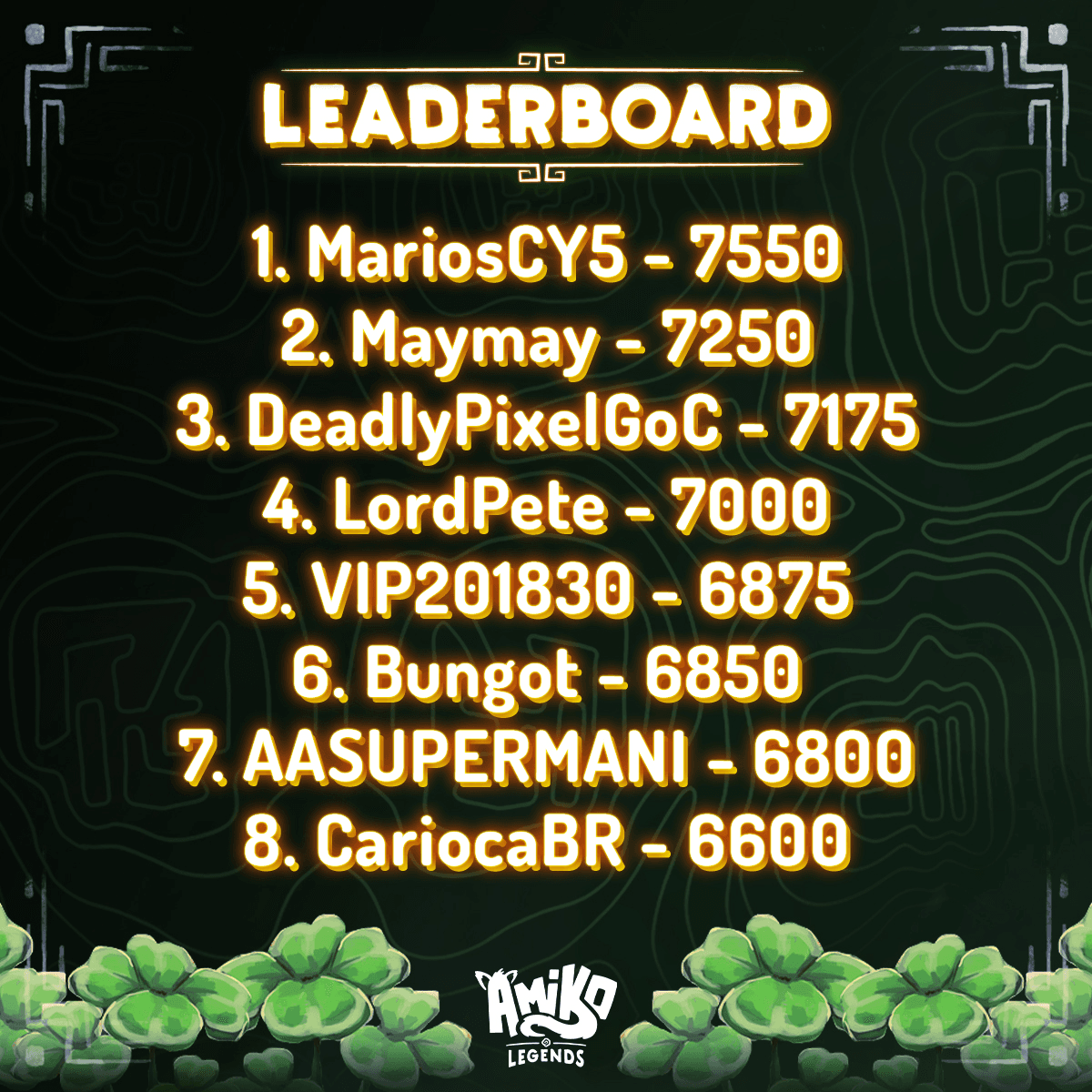The Amiko Arena Showdown event has concluded after 14 days of competition. **Event Results:** - MariosCY5 secured first place on the leaderboard - Individual rewards are now available for claim on the Aurory website - Community rewards will be distributed directly to player accounts Players who participated in the event can now collect their earned rewards through the official platform.