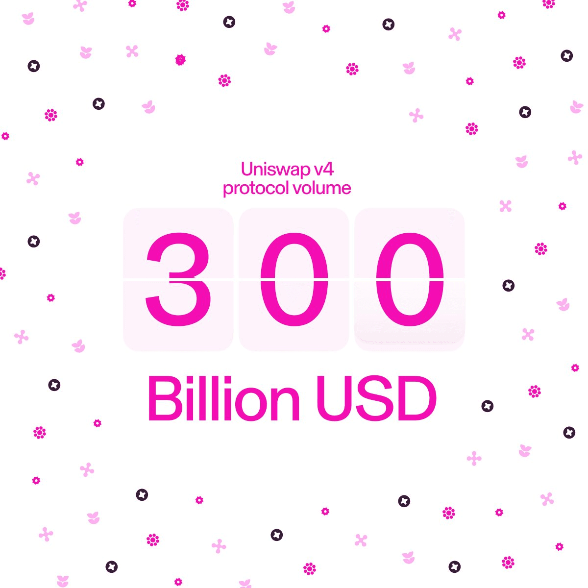 Uniswap v4 has processed $300 billion in trading volume in nearly one year since launch. **Key milestone:** - The protocol's latest version reached this volume threshold significantly faster than previous iterations - Comes as the broader Uniswap Protocol recently surpassed $4 trillion in all-time volume across all versions The growth demonstrates continued adoption of decentralized exchange infrastructure, with v4's improved efficiency and customization features attracting substantial trading activity.