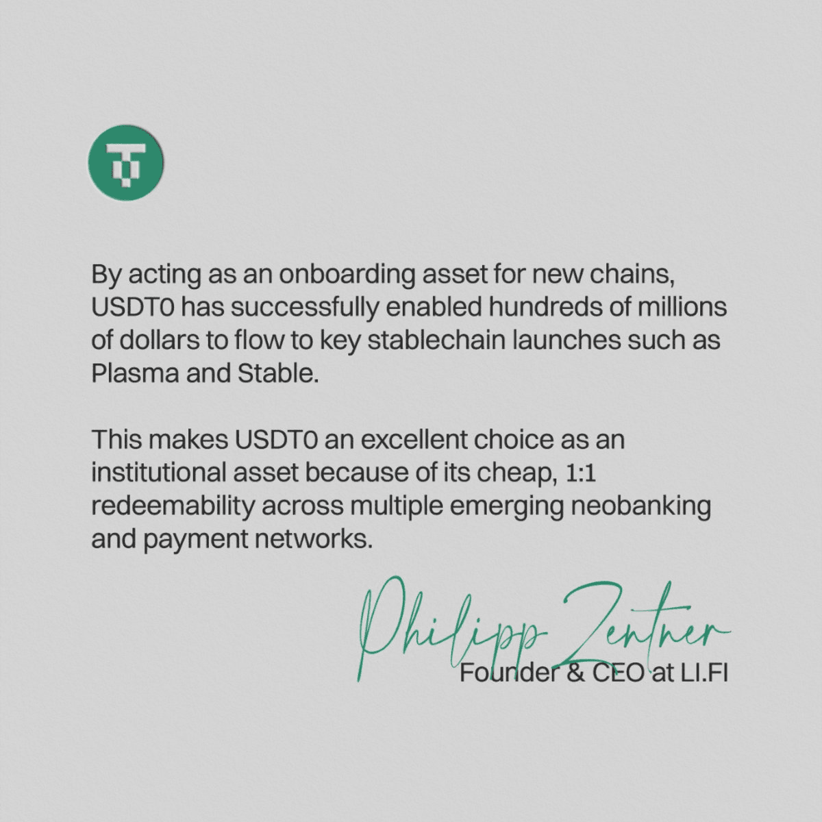 **USDT0** has launched as an omnichain stablecoin solution built on LayerZero's OFT standard, designed to eliminate liquidity fragmentation across DeFi networks. **Key Features:** - Unifies USDT liquidity across multiple blockchains including Solana, Avalanche, and MegaETH - Uses lock-and-mint architecture anchored to Ethereum reserves - Eliminates bridge exploits and double-counting risks - Single contract integration for protocols and wallets **Market Impact:** - Now live on Kraken via Plasma network - Targets institutional adoption alongside retail users - Enables deeper markets and tighter spreads for new chains - Powers capabilities on Hyperliquid's HyperEVM and HyperCore The infrastructure addresses a critical DeFi challenge where chains without deep stablecoin liquidity struggle with swaps, lending, and consistent asset pricing. [Read the full blog](https://paragraph.com/@tetherzero/how-omnichain-liquidity-is-reshaping-defi)
