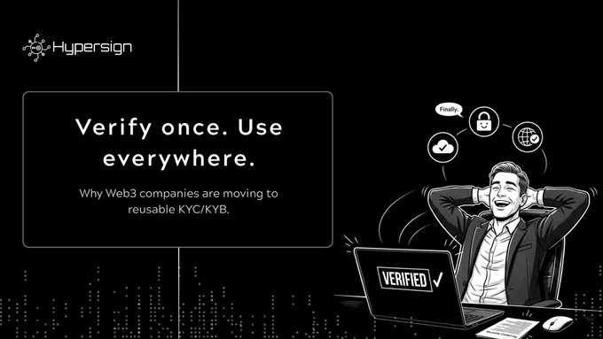 **Reusable KYC/KYB** is transforming identity verification at the infrastructure level. - Businesses complete **one verification** process - Identity becomes a **cryptographically signed credential** - Works across chains, dApps, and partner networks **instantly** - **Privacy-first** approach protects user data This eliminates the need for repeated verification processes across different platforms. The credential system uses cryptographic proofs to verify identity without exposing personal information. **Key benefits:** - No intermediaries required - Zero data exposure - Cross-ecosystem compatibility - Instant verification The technology represents a shift from traditional "who you are" verification to cryptographic proof systems that maintain privacy while ensuring trust.