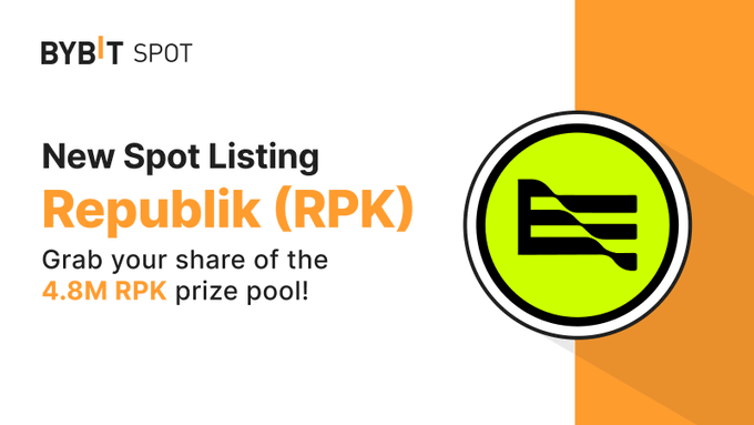 📣 $RPK is now Live on #BybitSpot with Spot Grid Bots! @RepubliK_GG Withdrawals on Nov 15, 2023, 10AM UTC Deposit or trade to earn your share of the 4.8M $RPK prize pool! 🎁 Join Event: i.bybit.com/1abdCmty 📈 Trade Now: i.bybit.com/1eSab23o #BybitListing #TheCryptoArk
