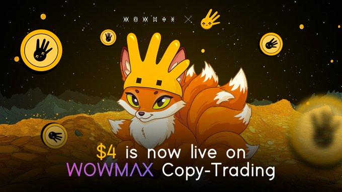 🧡 $4 is now live on WOWMAX Copy-Trading You can now copy top on-chain traders actively trading @4onbsc’s native token — fully non-custodial, transparent, and automated. Pick a wallet, set your allocation, and mirror the pros in seconds. 👉 app.wowmax.exchange/copy-trading
