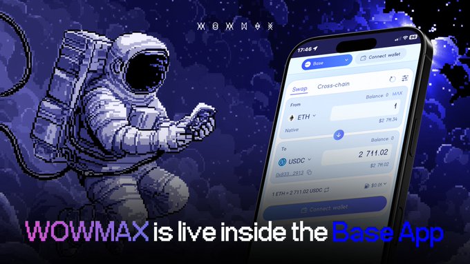 **WOWMAX** has been recognized in Base's weekly highlight for their work in making onchain trading more accessible. The DEX aggregator is focused on: - Simplifying trading processes - Increasing transaction speed - Improving accessibility for all users This recognition comes as **Base continues its rapid development** and ecosystem expansion. WOWMAX expressed excitement about being part of Base's growing momentum. The feature highlights WOWMAX's commitment to **streamlining the onchain trading experience** for the broader crypto community.