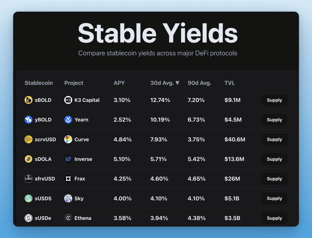 Stable Yields has added two new tokens to its platform. Users can visit stableyields.info to discover which tokens have been integrated. This follows recent activity in the stablecoin yield space, where ynUSDx recently reached approximately 12% APY through YieldNest's platform. **Key Points:** - Two tokens now available on [Stable Yields](https://www.stableyields.info/) - Platform continues expanding its token offerings - Comes amid competitive stablecoin yield environment Visit the platform to explore the new token options and compare yields.