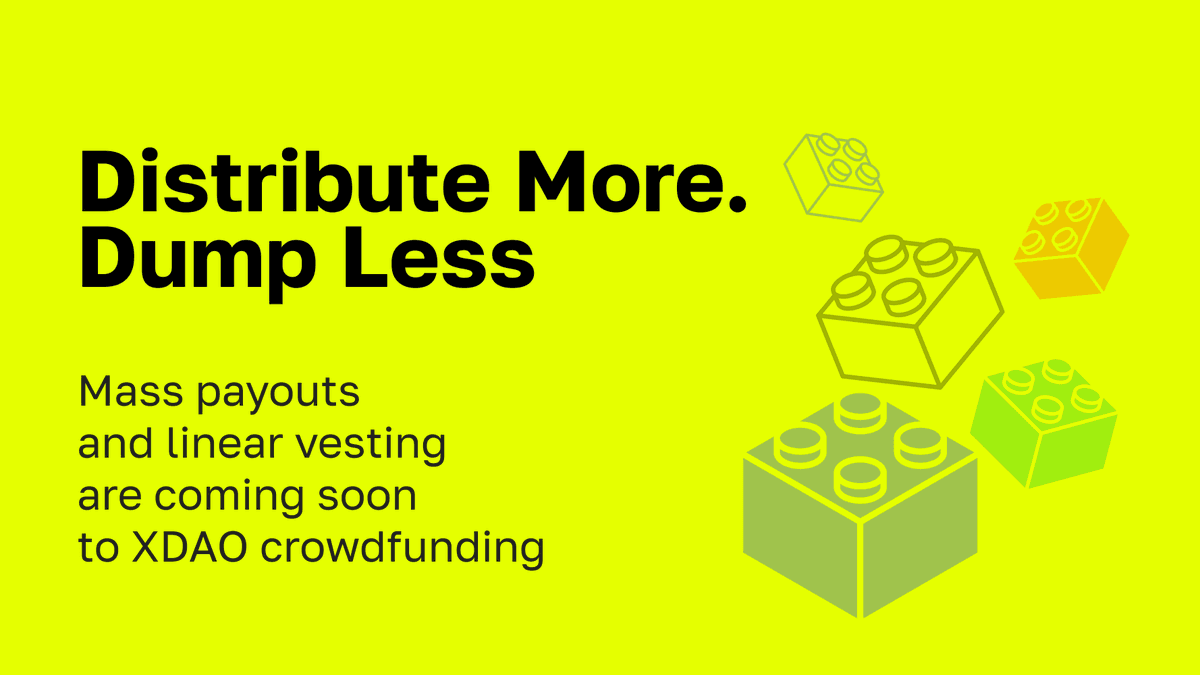 XDAO is developing two new crowdfunding modules based on community feedback: **Mass Payout** - Solves post-campaign fund distribution challenges - Enables proportional distribution to all LP holders - Flexible scheduling: monthly, yearly, or custom rounds **Vesting** - Replaces instant token distribution with gradual release - Features delayed start and linear unlock schedules - Helps founders retain participants and build long-term confidence **Key Details** - Both modules operate independently - Require DAO vote for installation - No impact on existing campaigns These tools add professional investment infrastructure to XDAO's crowdfunding platform, giving projects more control over token distribution and treasury management.