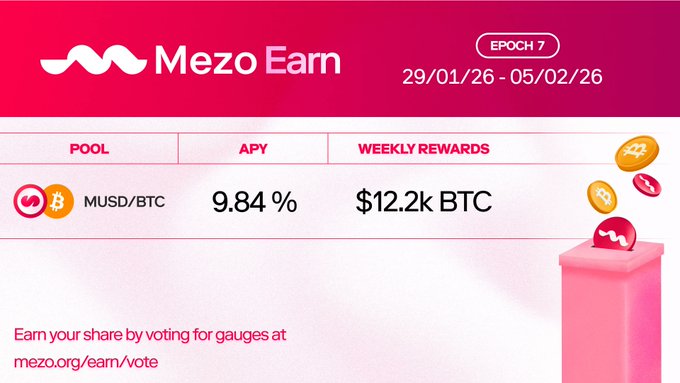 📢 NEW CAP NOW OPEN! Start the year by working smarter, not harder. We've reopened the Mezo Earn cap for the next 100 BTC until we reach 200 BTC locked and earning passively. Remember to complete all three steps: Lock > Vote > Claim Epochs close every Thursday at 00:00 UTC.