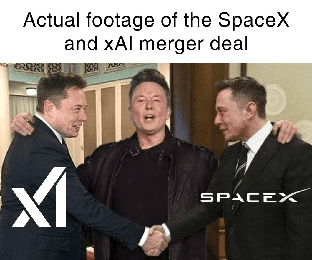Elon Musk is reportedly planning to merge SpaceX and xAI, his artificial intelligence company, creating confusion across the tech and space industries. **Key Details:** - The merger would combine SpaceX's space exploration capabilities with xAI's AI technology - xAI recently raised $15 billion in equity funding at a significant valuation - Industry observers are questioning the strategic rationale behind combining a rocket company with an AI firm **Why It Matters:** The move could reshape how AI and space technology intersect, though stakeholders remain uncertain about the practical implications. [Read full article](<https://wallstmemes.com/news/elon/elon-to-merge-spacex-and-xai-and-everyones-very-confused/?utm_source=Twitter&utm_medium=Wallstmemes+-+Twitter&utm_campaign=Articles>)