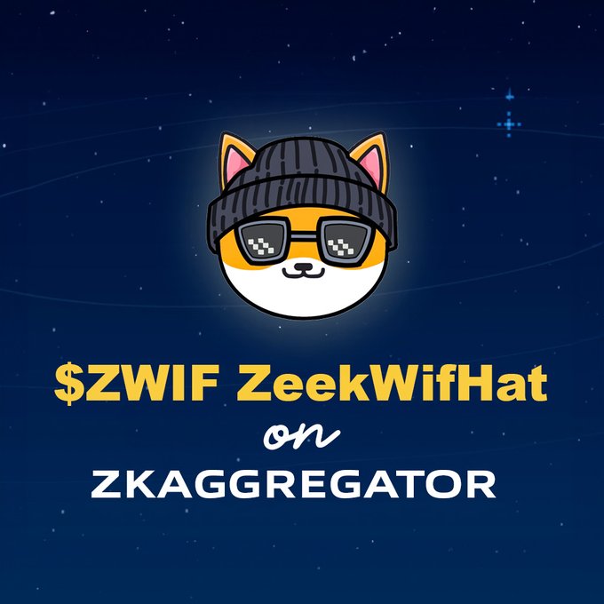 🎉 $ZWIF (@ZeekWifHat) ready to trade on our zkAggregator! 🐱 $ZWIF is another #ZEEK cat meme token on @zksync, this time with a hat 👒. 🌐 Trade at: zkswap.finance/aggregator #ZWIF #WIF #Swap2Earn
