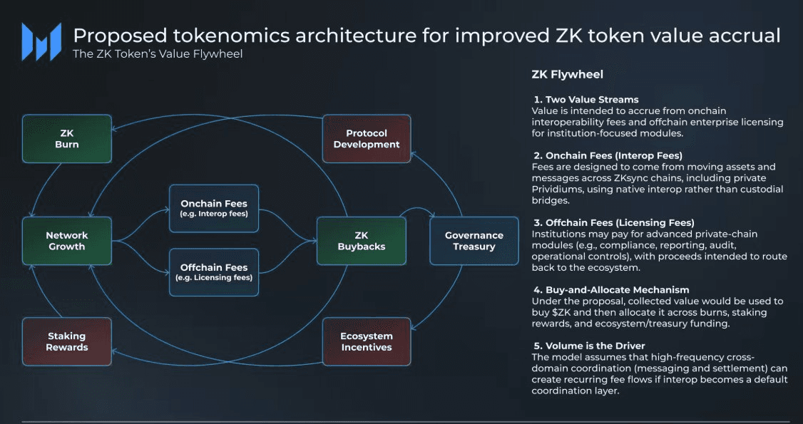 **ZK token is transitioning from a pure governance token to a value-accrual model.** The shift enables protocol usage to generate recurring revenue flows back to the ecosystem. This change comes as: - Interoperability solutions approach production readiness - Private institutional chains near deployment - Both onchain and offchain revenue streams are being structured to flow value to $ZK holders through governance mechanisms The evolution represents a fundamental reframing of the token's economic model, moving toward real utility beyond voting rights.